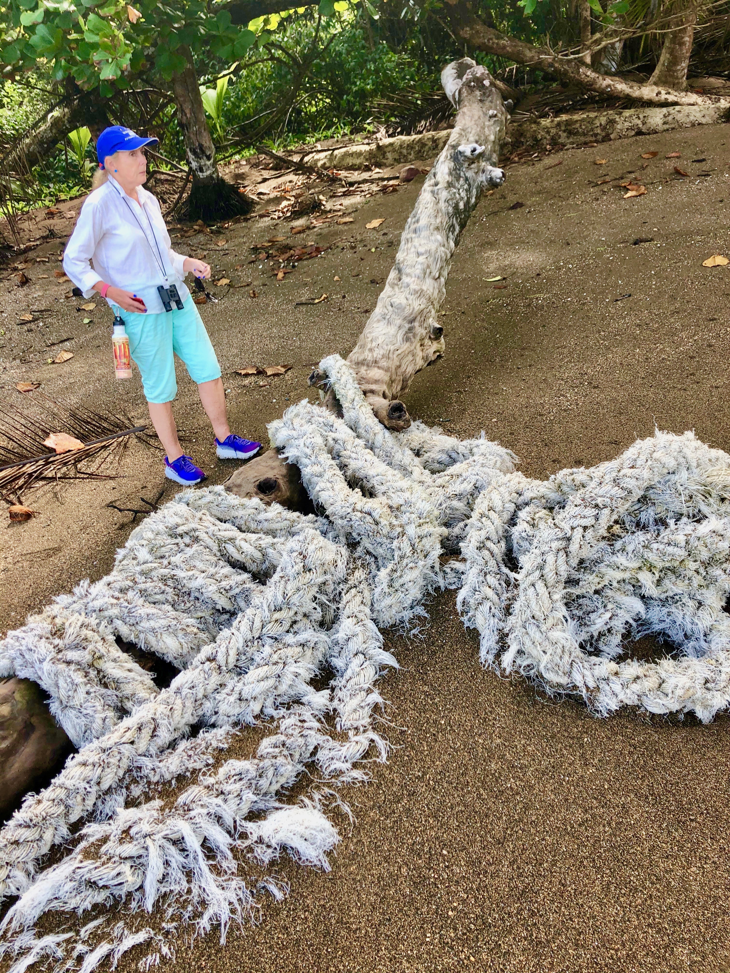 More of Jesus Christ. Gorgeous colors when not just a streak across the water. Like catching a spider’s nest in the face while exploring? These are remarkably tough. The 4” spider remained but was not happy when the biologist demonstrated by pulling a strand about 2 feet out of shape. He told us that these webs have now been discovered to have anti-bacterial qualities for humans. More treasures forthcoming from the rainforests formerly known as wastelands.