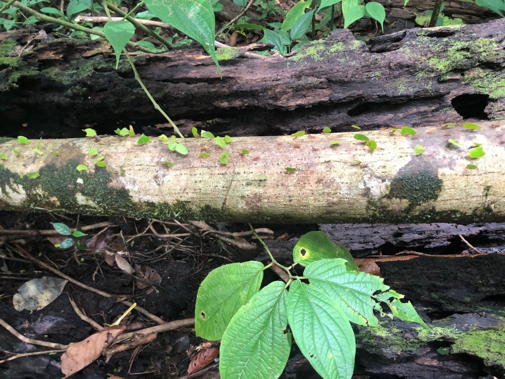 Literally billions of leafcutter ants seemed to be busily engaged 24-7 in cutting and hauling their cargo on little ant highways (Hibiscus leaves seemed to be choice) to the colony that could be dozens of feet away only to pile them up inside to rot. Enjoy eating the rot later. For us, towering overhead in the dark, the scene appeared to be millions of bits of green silently shuttling across the jungle floor. The green carpet was all moving in tiny streams.