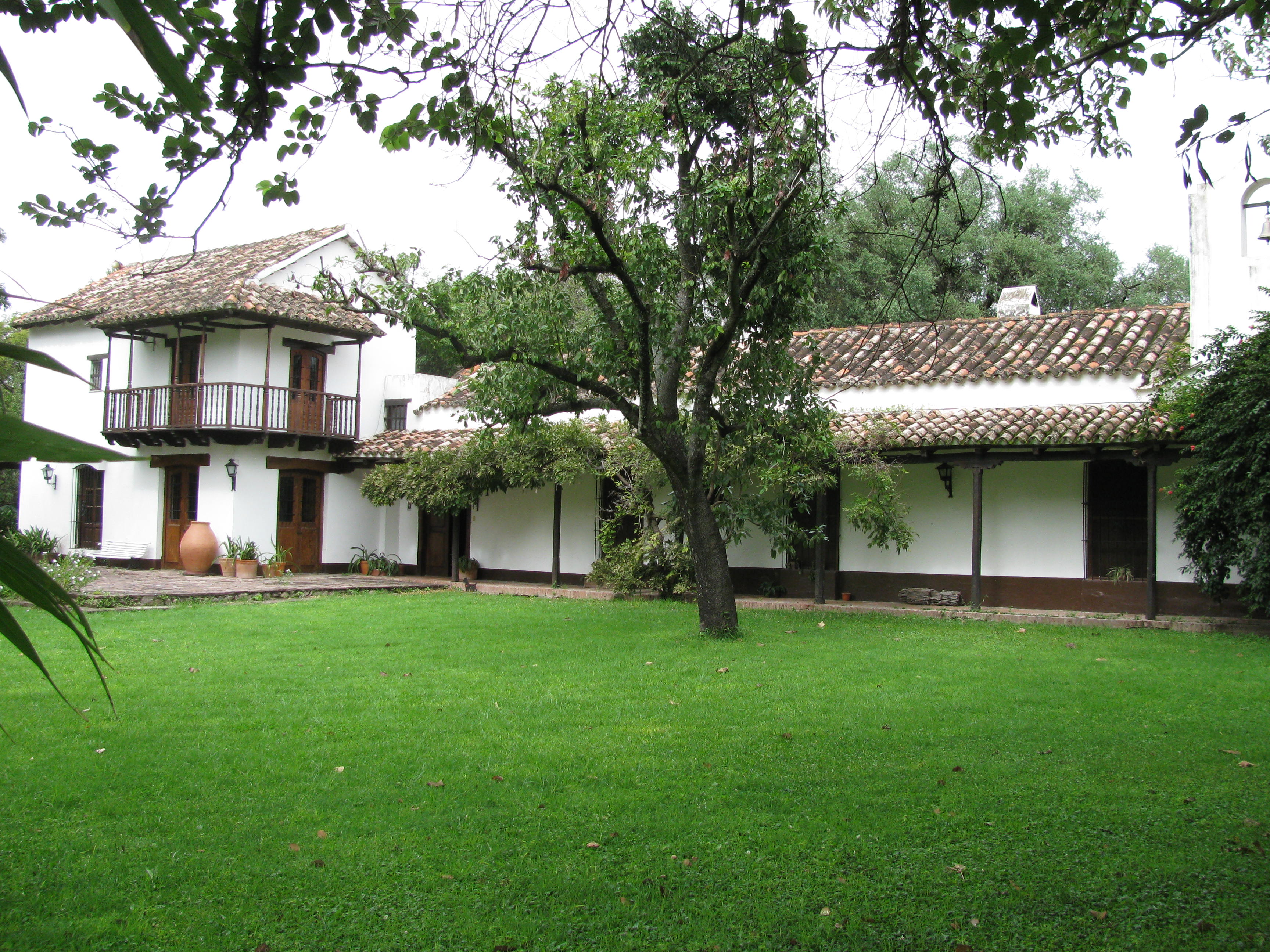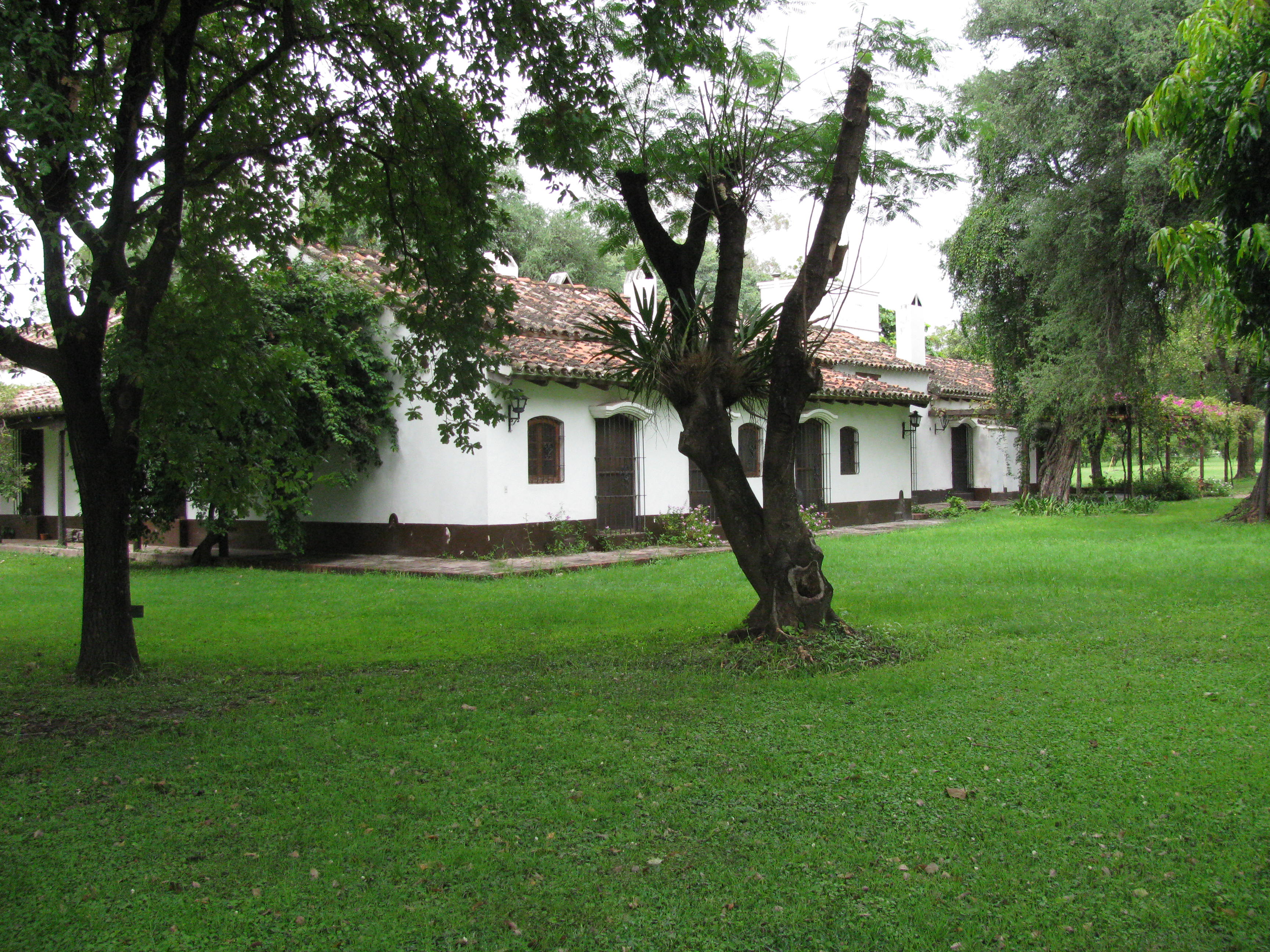 We are now in El Bordo del Las Lanzas. This is an estancia about forty five minutes from Salta in the north of Argentina. The house was built in 1609 and the interior resembles many houses of that period in Britain. Beams abound. The outside however is very Spanish and the tiled roof, courtyards full of flowers and greenery and wide verandas are charming. The house is full of family photos, books, paintings, beautiful furniture, a library, ornate plates, religious ornaments, pottery, silver and many other artefacts, including animal skins, saddles and bridles, an antique gun collection and a lot more. The family (apart from the father who died) convene here every year for Christmas. There are ten married children ( I wonder how much of a role the father played with their upbringing !) plus twenty three grandchildren. A wealthy family who obviously have a number of staff who run the house (the mother has now moved to Salta and the children are scattered around the globe) and have “paying guests” like us who come and enjoy the tranquility of the place rather than staying in a hotel. “Please use the house as if it is your home” Daniel the manager says when we arrive. He also wants to know when we would like to go for a ride and whether we would like a hour or two hours or more. We meet up with the only other couple staying here. Frederik and Sasha are a delightful couple. Both in their early thirties, they live in London, she is from California and he is from Denmark. We leave with two of the “Gauchos” and are later joined by a third. Our horses which are really no more than ponies are called “step horses” and that is exactly how they move, the front legs are very active and they lift them higher than your average horse. This is the second time I have ridden this year, the first being in New Zealand. Riding is a side of Guy that is new to me. He looks and acts so proficient on horseback that I wonder how it comes so naturally to him. I, on the other hand was brought up with ponies of many shapes and temperaments and worked with thoroughbreds for years but still feel on edge for the first half an hour at least. My daughter, Clara would be very proud of me if she were here as she knows that for many years her old pony, Katie, was the only animal that I trusted enough to ride. We rode through streams, fields and tracks, sugar cane and beans and the beauty of the place is incredible.