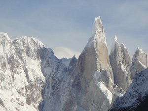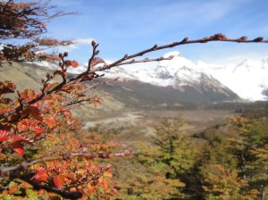 We arrive in El Chaten before dark. This mountain town described as a “beautiful mountain village” seems far from it when we arrive. The population is 1,000 at the height of the season. It is pouring with rain and the place looks desolate, this is autumn and the season is at an end. There are many buildings half finished and there seems no warmth or soul about the place. Already we are wondering why we have spent three hours in a bus (and will spend three hours going back) to see this place. We find somewhere for dinner and then go back to our hotel room. A knock on the door, there the receptionist stands with a note. Apparently our guide will collect us at 8.30am and take us for a hike….yikes, that is not only a bit early but the bumf says we can have a short walk or a long walk, I think we had already chosen the former. I asked her politely how long the walk would be and without hesitation she said about nine hours!!!! I knew immediately that this would have to be changed and spent the next half an hour setting about doing just that.