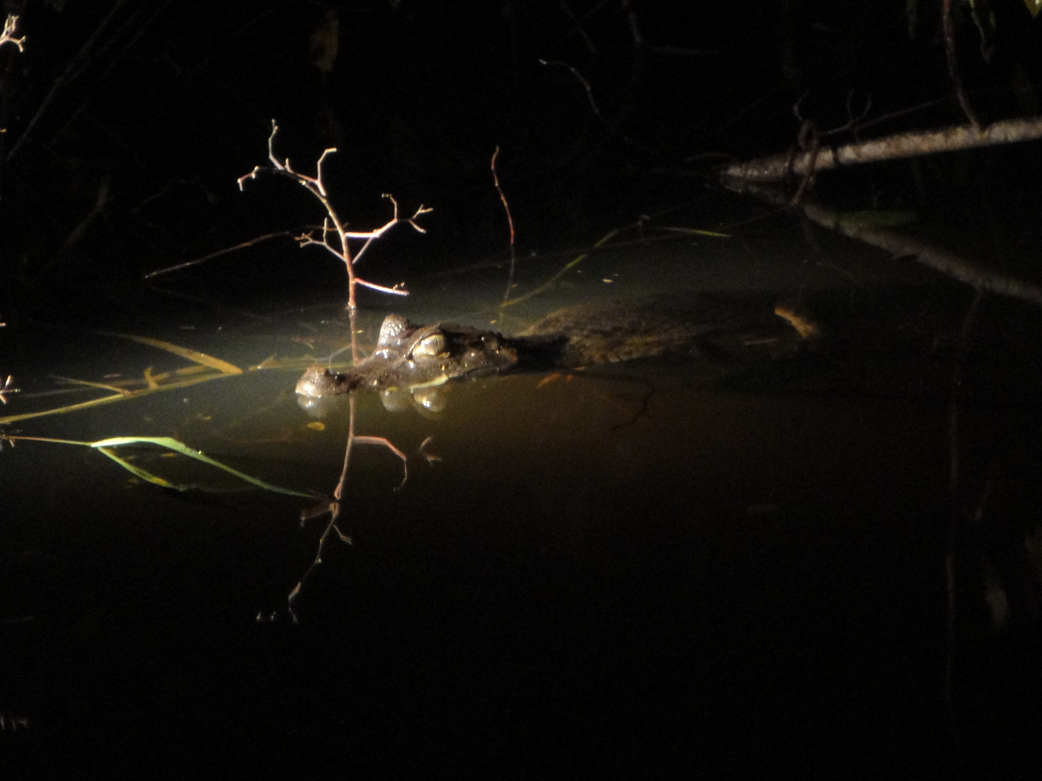 One of many caiman, day and night….. their glowing eyes at night simply remind us how primevil this all is… Posted on May 13, 2012 by thebunguycord Reply