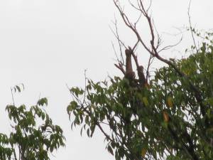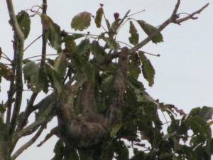 A sloth with a baby clinging to her chest….. fuzzy…. it was utterly amazing how this monumentally slow animal could literally disappear in the leaves…. Posted on May 13, 2012 by thebunguycord Reply
