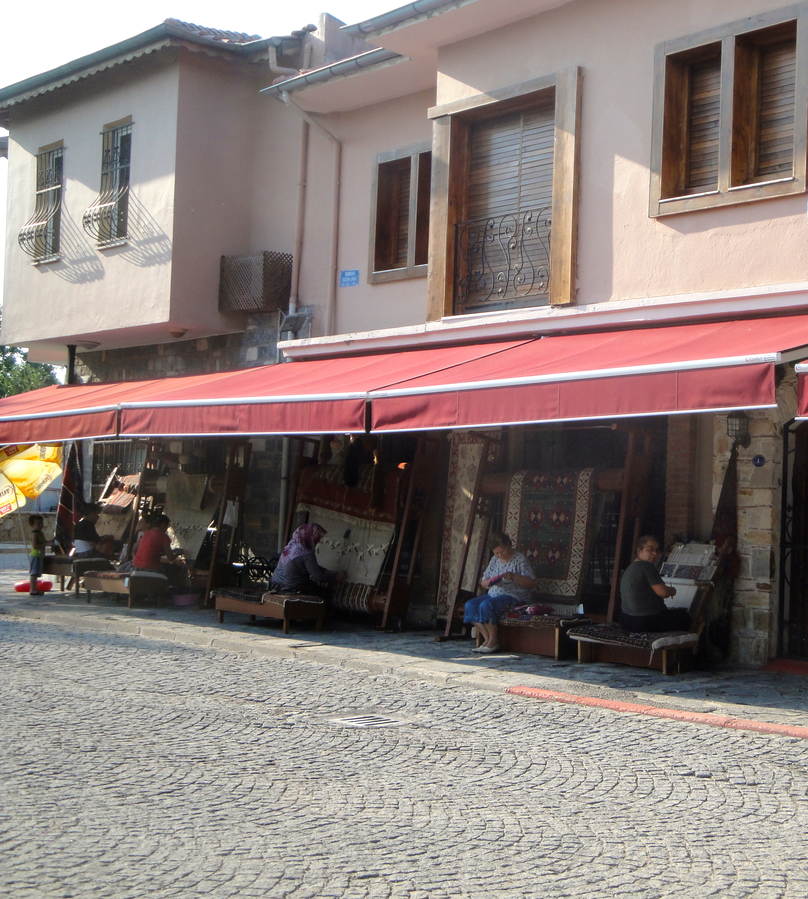 Women weaving rugs on the sidewalk in Selcuk near Serince village. Bunny bought two beautiful kilims here…. old dowry items from 1/2 a century ago. Posted on August 3, 2012 by thebunguycord Share this: Share on X (Opens in new window) X Share on Facebook (Opens in new window) Facebook Like Loading... Related