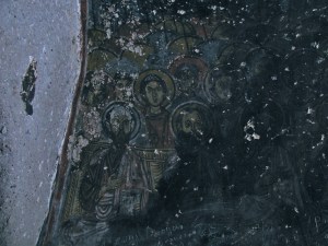 An example of the interior of the Kilise church frescos. Sometime in the past, people sought to repair them by removing the smoke soot when they learned that the paint was better protected with the soot on. Posted on August 7, 2012 by thebunguycord Share this: Share on X (Opens in new window) X Share on Facebook (Opens in new window) Facebook Like Loading... Related