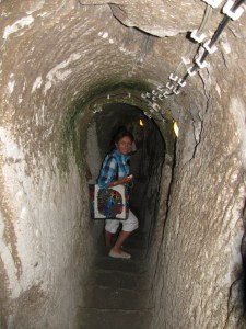 Bunny on the stairs going down in Derinkuyu. Notice the green stuff growing on the walls. This otherwise void-of-any-visible lifesigns cave network is growing the most primitive life forms prompted by the photosynthesis from the electric lights! Posted on August 10, 2012 by thebunguycord Share this: Share on X (Opens in new window) X Share on Facebook (Opens in new window) Facebook Like Loading... Related