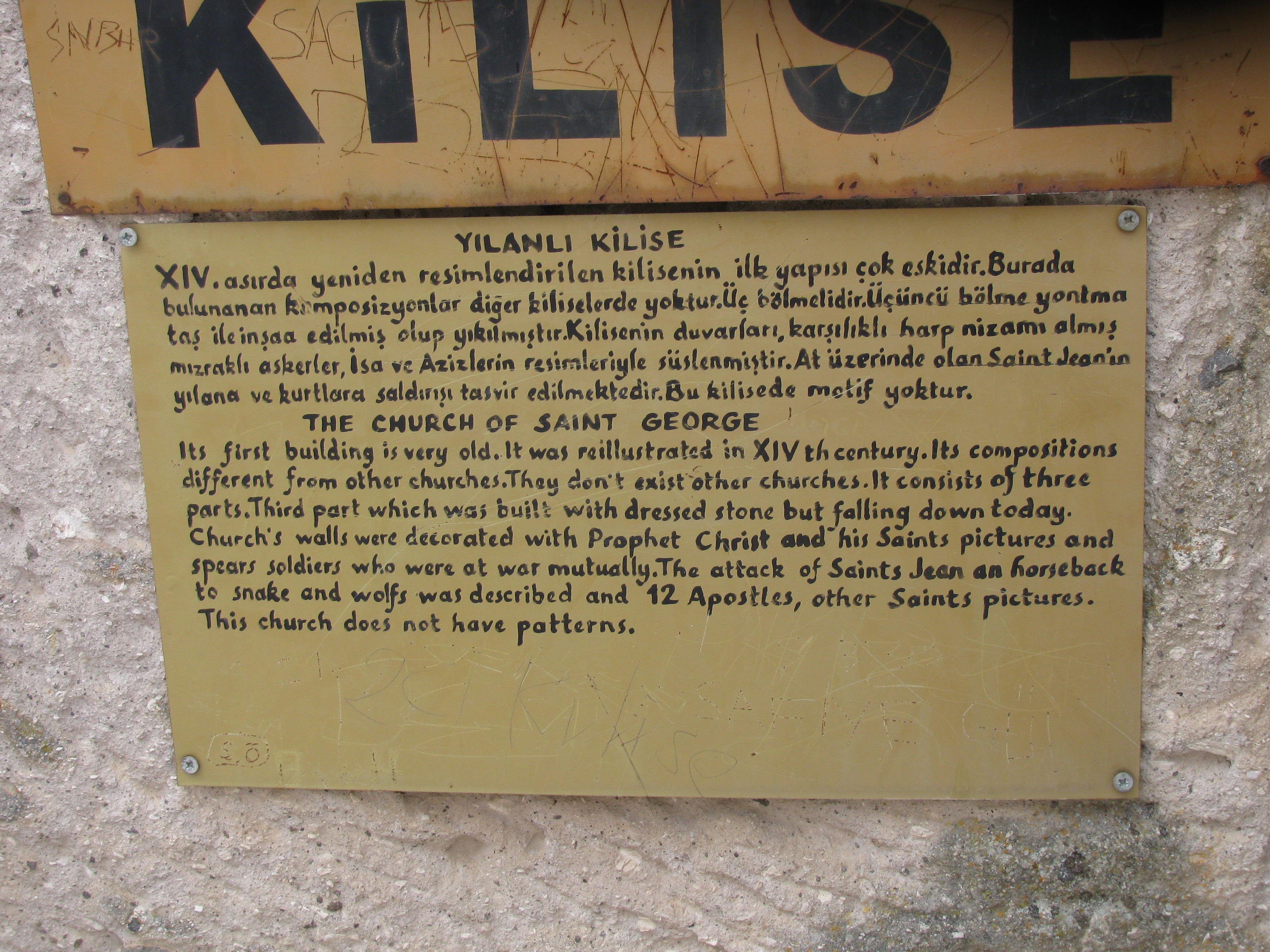 The interior of the Kilise Church illustrates ancient Christian paintings defaced and covered over by icons when showing human faces became illegal. Posted on August 5, 2012 by thebunguycord Reply