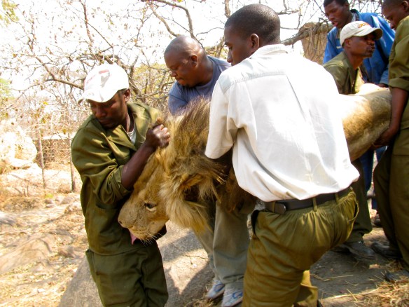 Six men could hardly carry this lion to the truck. Posted on September 17, 2012 by thebunguycord Reply
