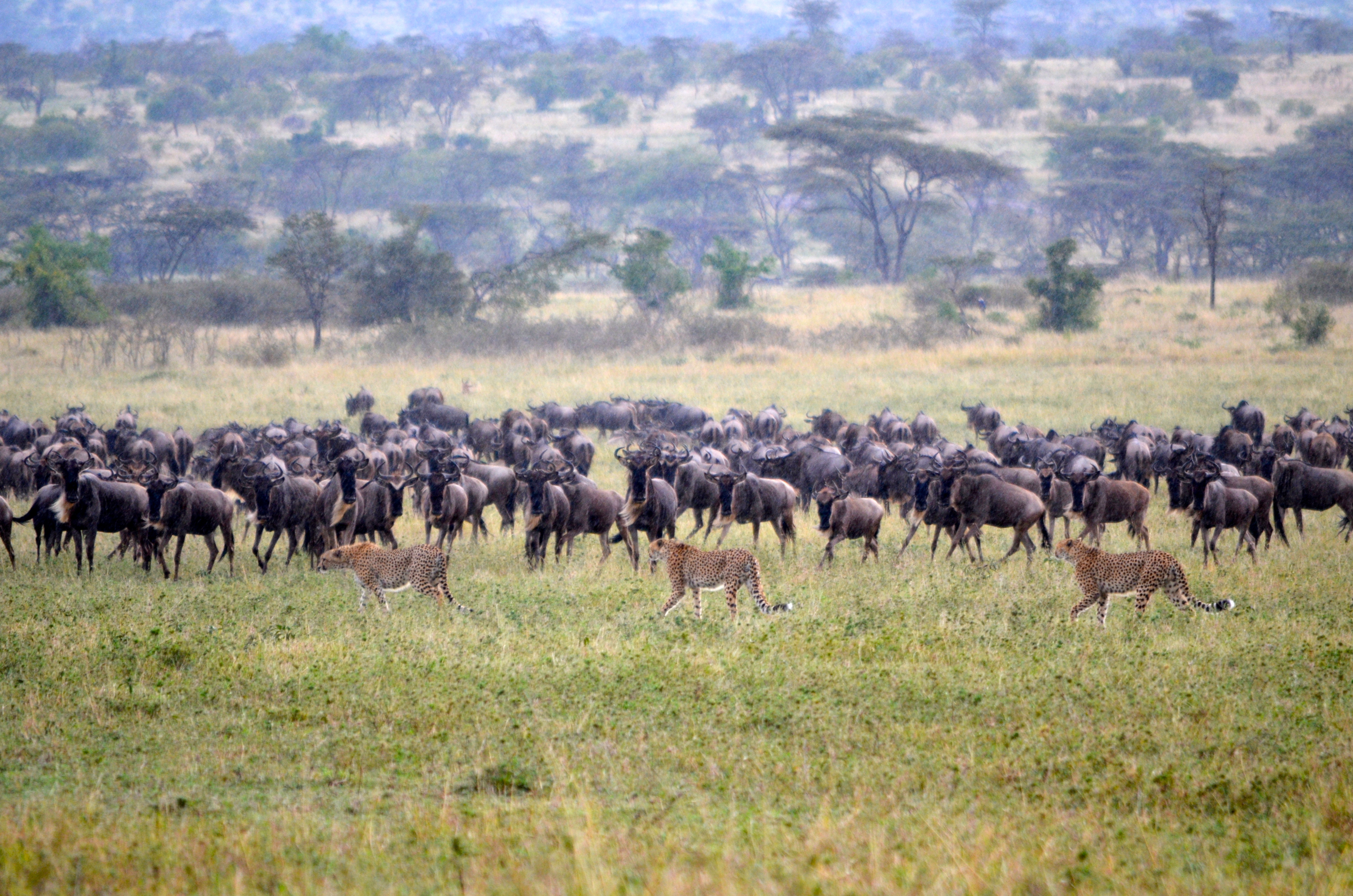 The three brothers walked into the herd of wildebeest as if they were just shopping for dinner… in about the same time as it would take a human to make a selection from the meat counter and put it in their basket, they made their selection and ran it down and killed it.