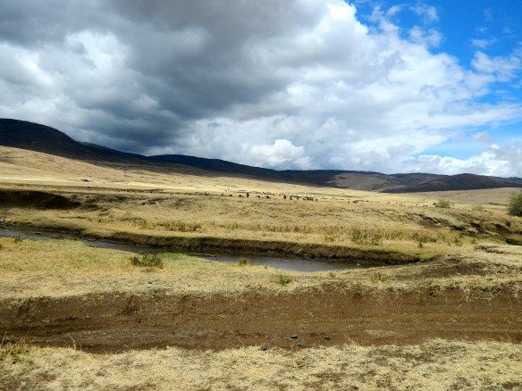 The next 3 photos were supposed to be a panorama from east to west. They aren’t in order. I sent them to the web site in order, but…… anyway, be patient. They will appear below. This one shows the easterly part of the Ngorongoro Crater…. The little black dot clusters toward the front are herds of wildebeest. Image Reply