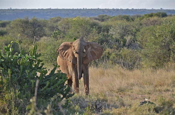 We surprised this one in the bush…. And elephants do not like surprises. Shortly after giving us this once-over, it made a mock (we think!) charge and closed about one-half of the distance between us before deciding none of us needed this…. Image Reply