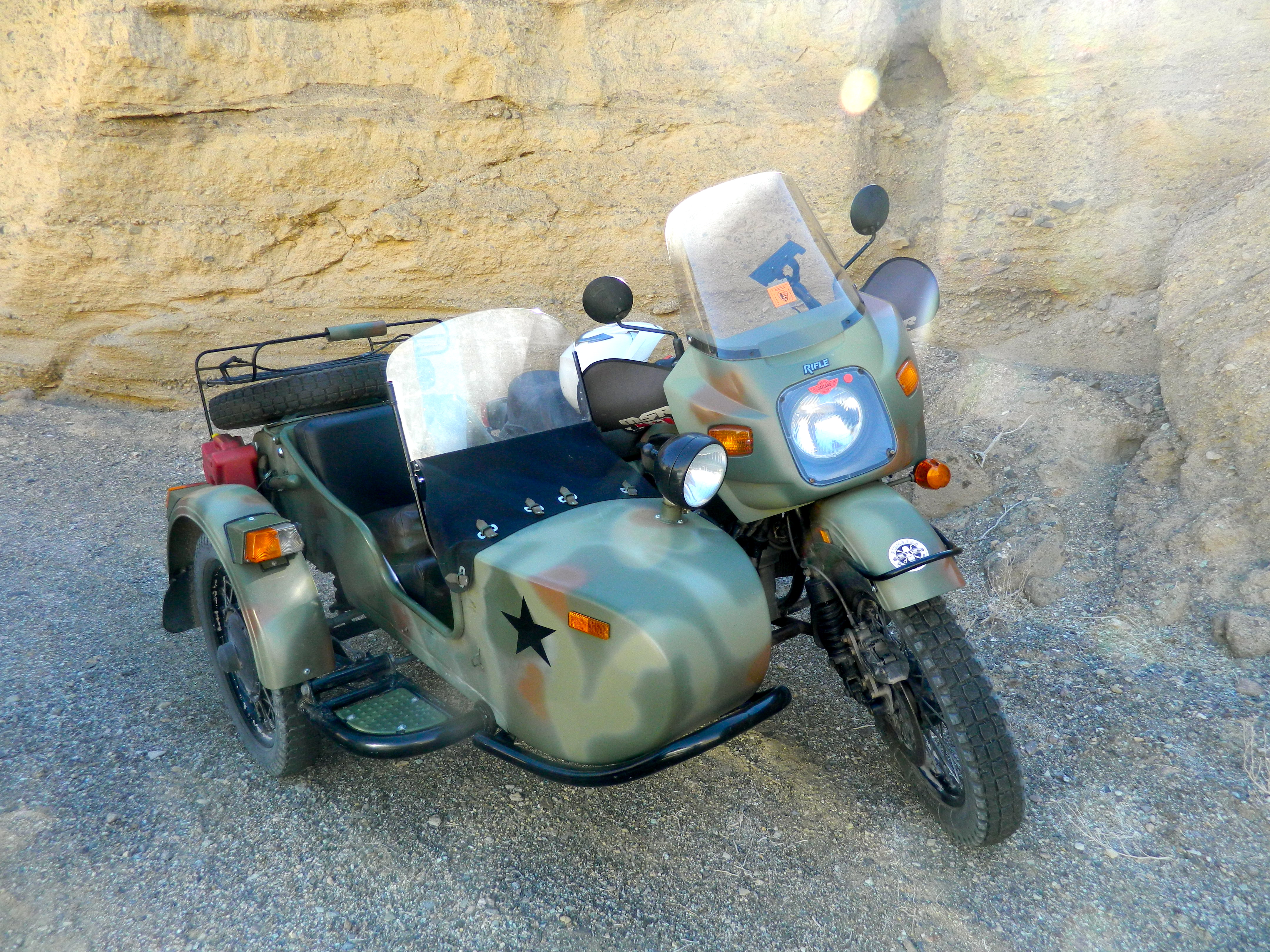 Out here in the rough, rough, rough, desert and mountains…. what should we happen to find? A Russian Ural motorcycle with sidecar with a European couple who had come down from Canada, then to Mexico, and then back up to Death Valley. They said all of this happened without a hitch. Good THING! Only one small reserve gas can. Posted on March 6, 2014 by thebunguycord Reply