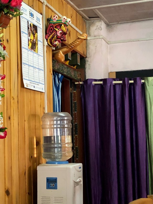 Mongar: Tonight we are at a very high-end lodge in Mongar (seriously): US$45/night including breakfast and dinner. Classic architecture, finely executed, gracious and friendly staff… of course, all dressed in classic attire. Food everywhere is basic but scrumptious. Once again, we are the only guests.
