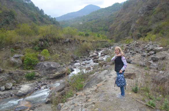 Peaceful, quiet, tranquil. Our driver has honked his horn (generally at totally blind curves) 3 times in 3 days. It averaged once every 20 seconds in India. Today we had a delightful quiet picnic by the side of a very active (“technical” we would call it in my rafting days) trout stream.