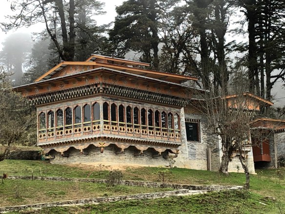 The last place we stayed in Bhutan. This is just part of the entrance hall/lobby …a staggering piece of art by a Nepalese investor who believes in the future of Bhutan tourism. National Geographic rated this place as one of the wonders of lodges throughout the world.