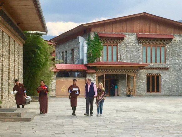 The last place we stayed in Bhutan. This is just part of the entrance hall/lobby …a staggering piece of art by a Nepalese investor who believes in the future of Bhutan tourism. National Geographic rated this place as one of the wonders of lodges throughout the world. Image Reply