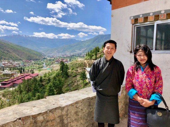 Our guide Phuntsho and travel assistant in Bhutan, Vikki, outside of the monastery where we had a private blessing ceremony with a Lama (senior monk). In the overwhelming temple, 8 monks, chanting, horns, drums, then words in English, then blessings, neck mala, and Q&A–he had been to Spirit Rock! Small world. Image Reply